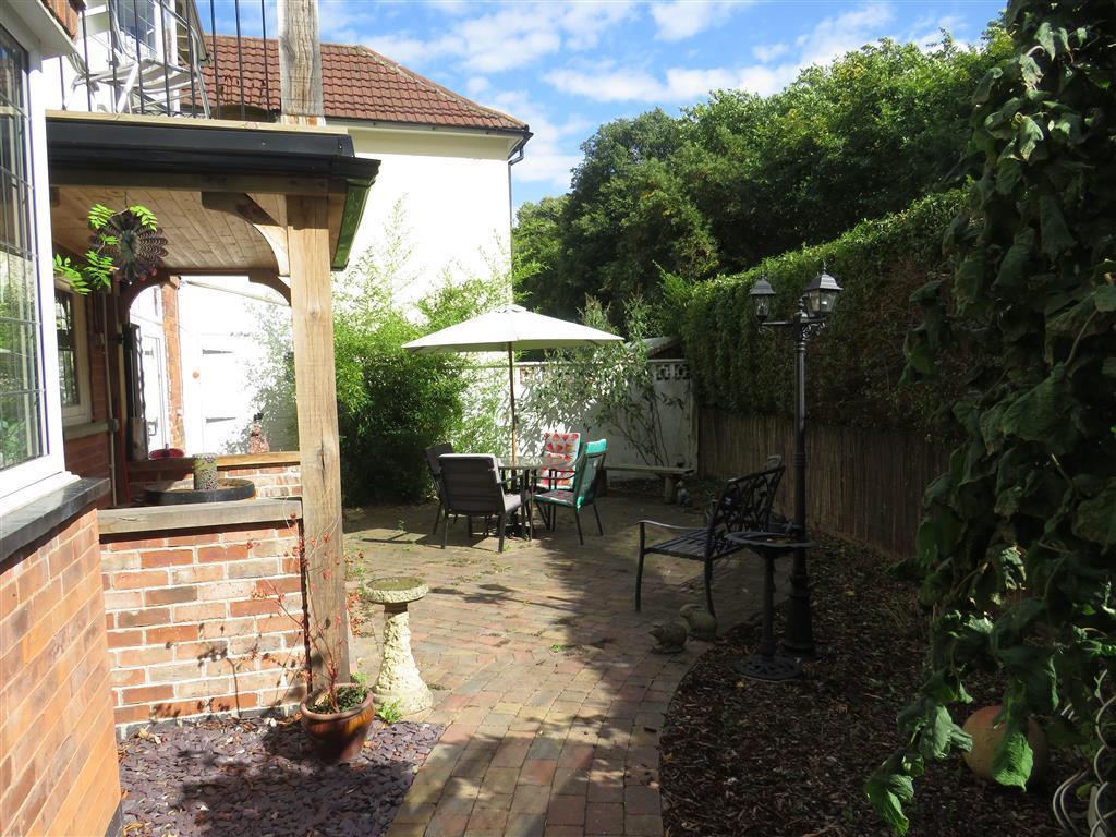 Private and enclosed rear garden with patio area, storm porch, well stocked borders, mature trees, glass covered well, wooden shelter with power and lighting, shed, block paved gated driveway to the side of the property.